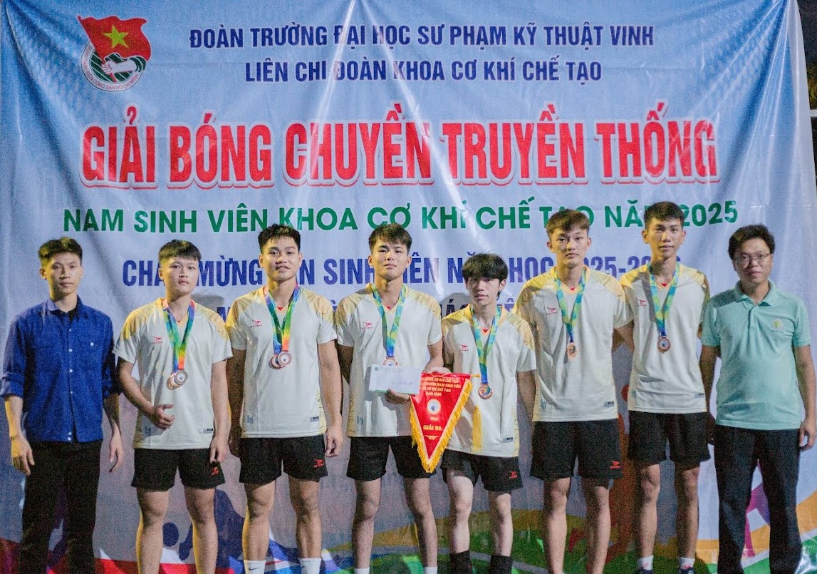 Chiều ngày 13/10/2025 tại sân bóng chuyền - Trường Đại học Sư phạm Kỹ thuật Vinh diễn ra hai trận đấu cuối cùng giải bóng chuyền truyền thống nam sinh viên Khoa Cơ khí chế tạo năm 2025, đó là trận tranh giải ba giữa hai đội ĐHCTMCK20A3-CĐCK50Z và trận chung kết giữa hai đội ĐHCTMCK20A1-CĐCTMCK51Z.